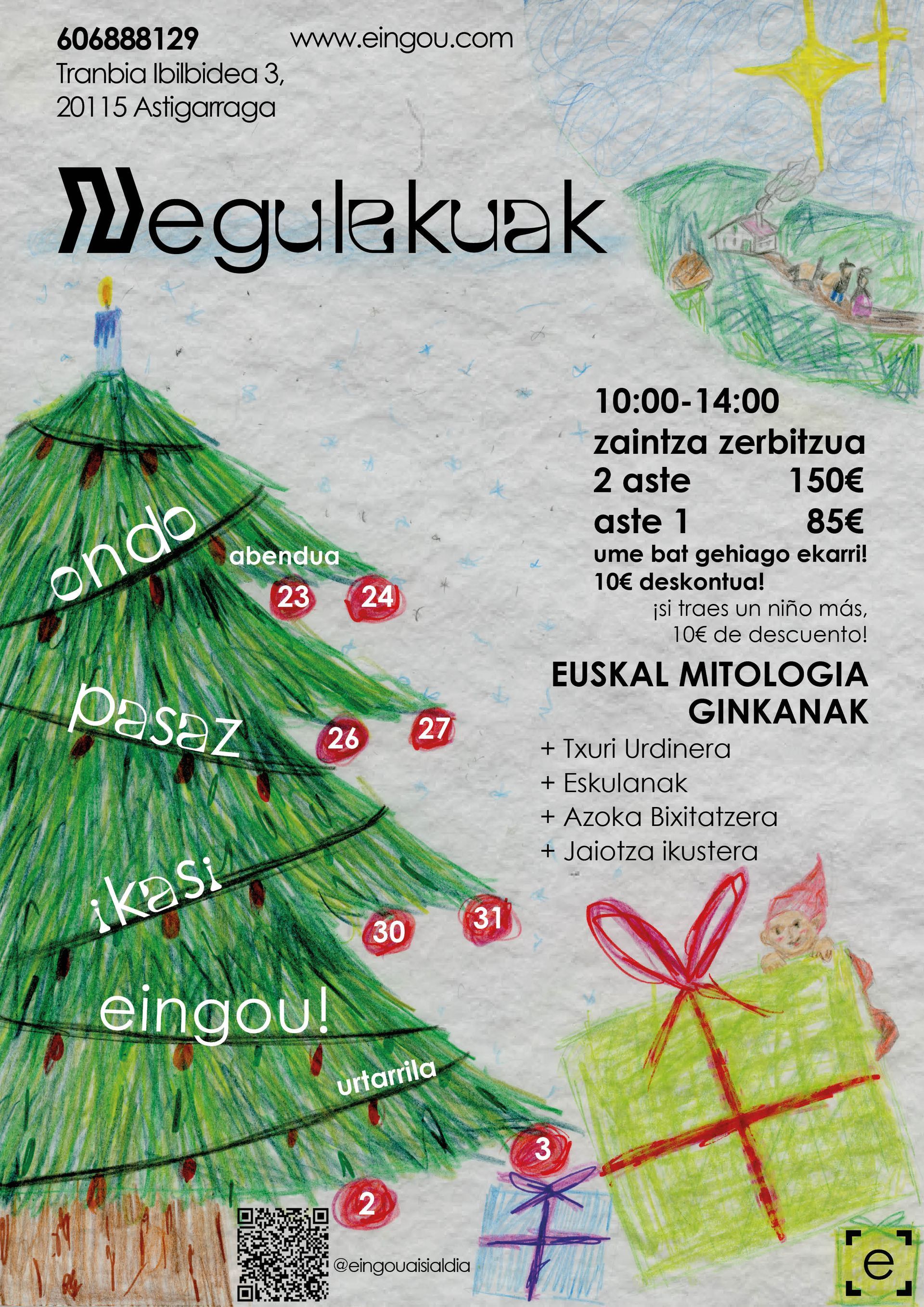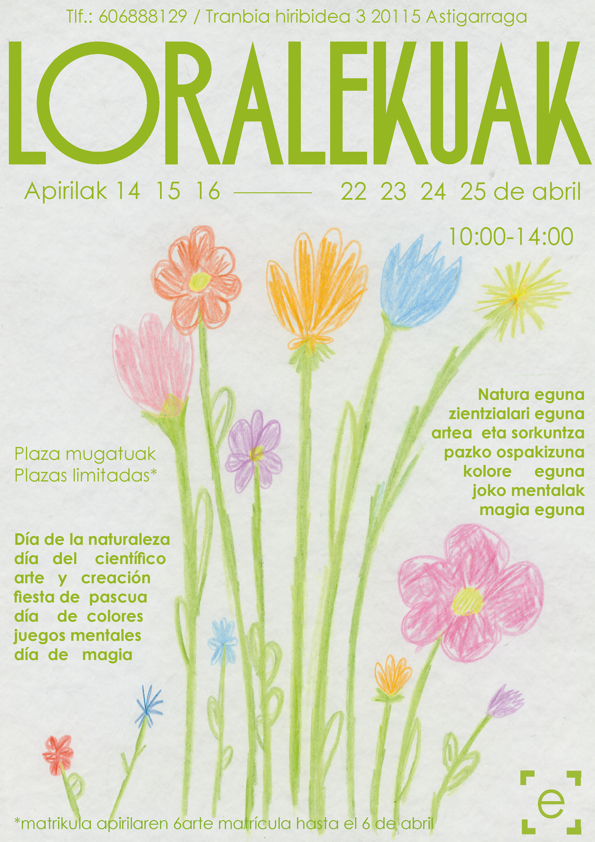 Ludotecas para niños y niñas de vacaciones; semana santa (loralekuak; jardines), verano (udalekuak; colonias) y navidad (negulekuak; invernaderos), para pasar su tiempo libre disfrutando y aprendiendo, orientadas a niños y niñas de 6 a 12 años. A través de diferentes actividades (Yincanas, trabajos manuales, salidas, juegos...) tenemos la oportunidad de trabajar y aprender sobre muchos temas.