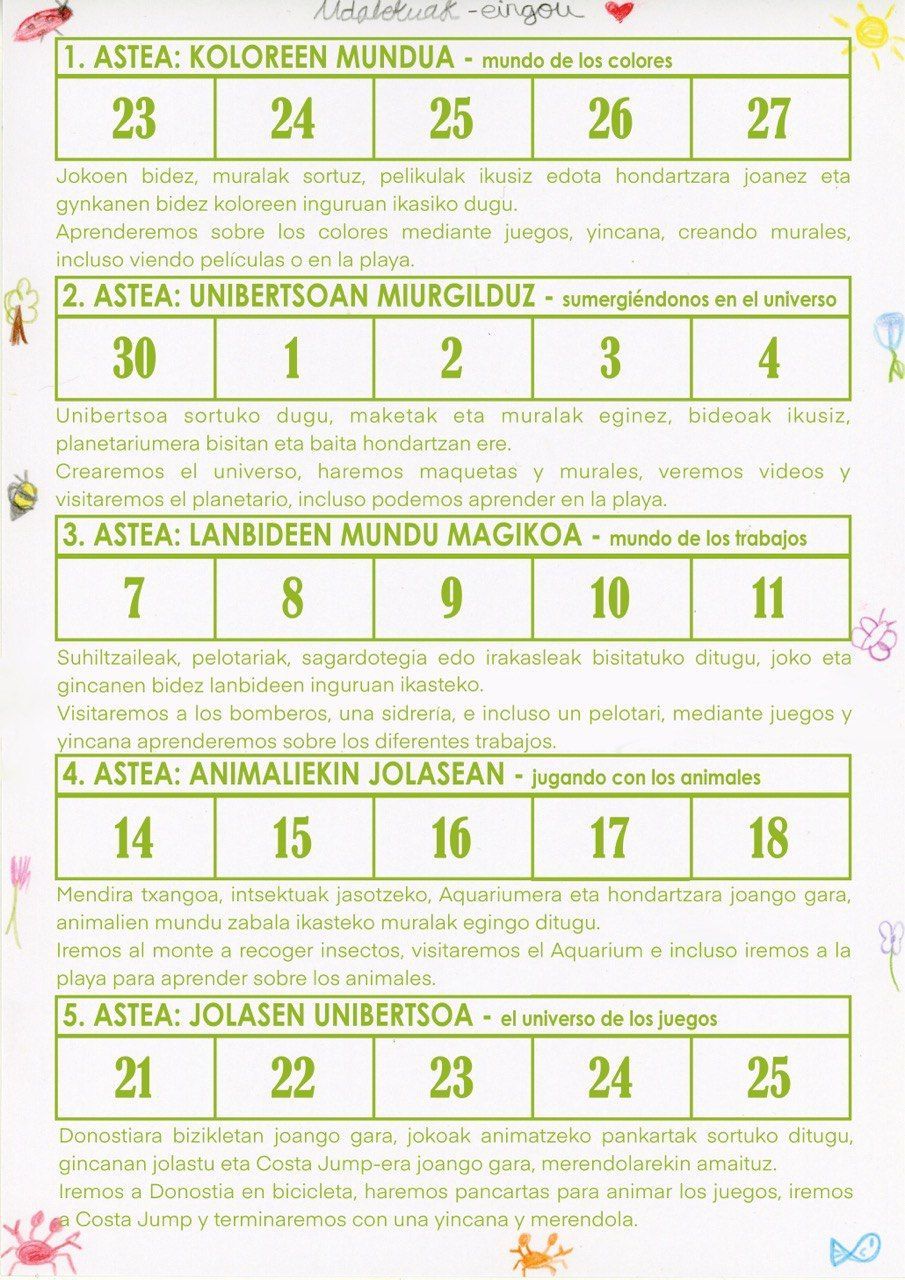 Nuestro objetivo es aprender mientras lo pasamos bien. En las vacaciones de verano tenemos mucho tiempo que podemos aprovechar. Aprenderemos sobre los colores, el universo, los trabajos, deportes, juegos y animales.